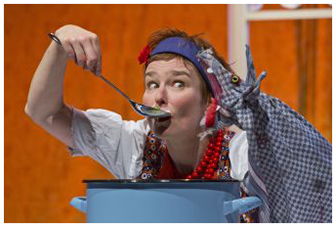 Ein tierisches Küchentheater mit viel Gemüse, einer Köchin, einem Huhn, einem alten Wolf und Musik für Kinder ab 4 +